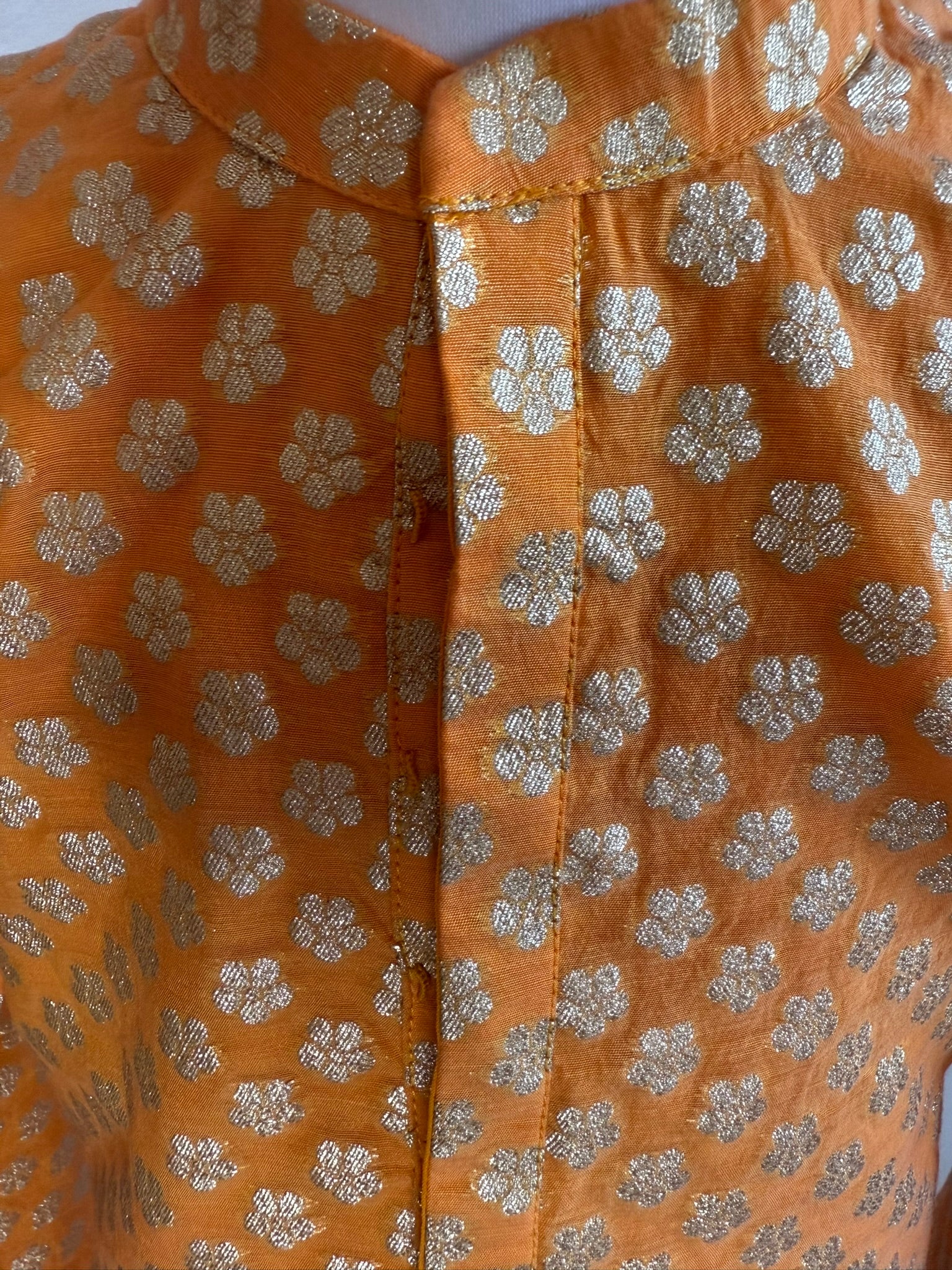 Add a pop of colour to your child's wardrobe with our on trend tangerine kurta paired with ivory straight trousers for a stylish look.