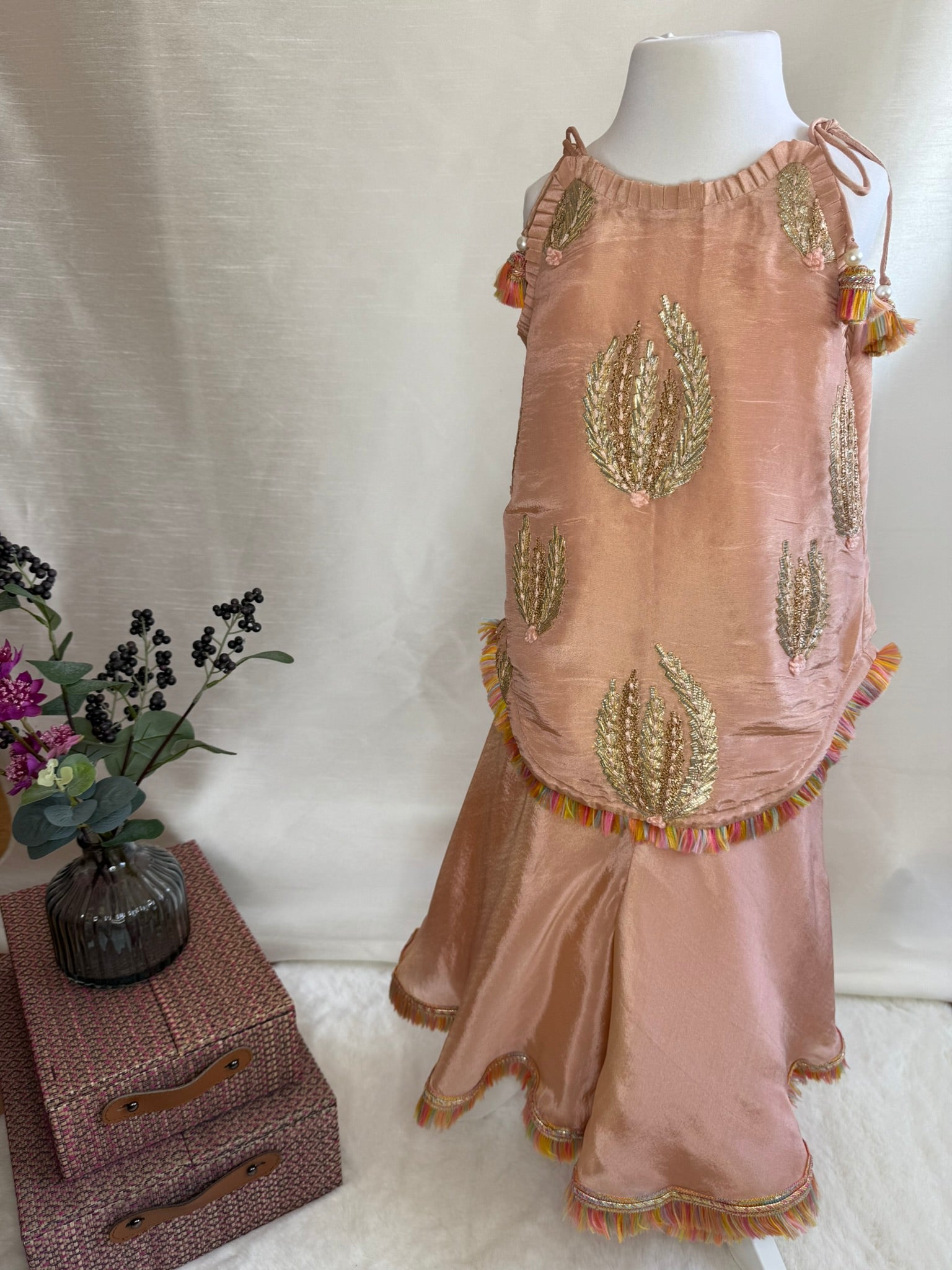 Dusty Pink Kurta and Flare Trousers with Gota Flower Embroidery