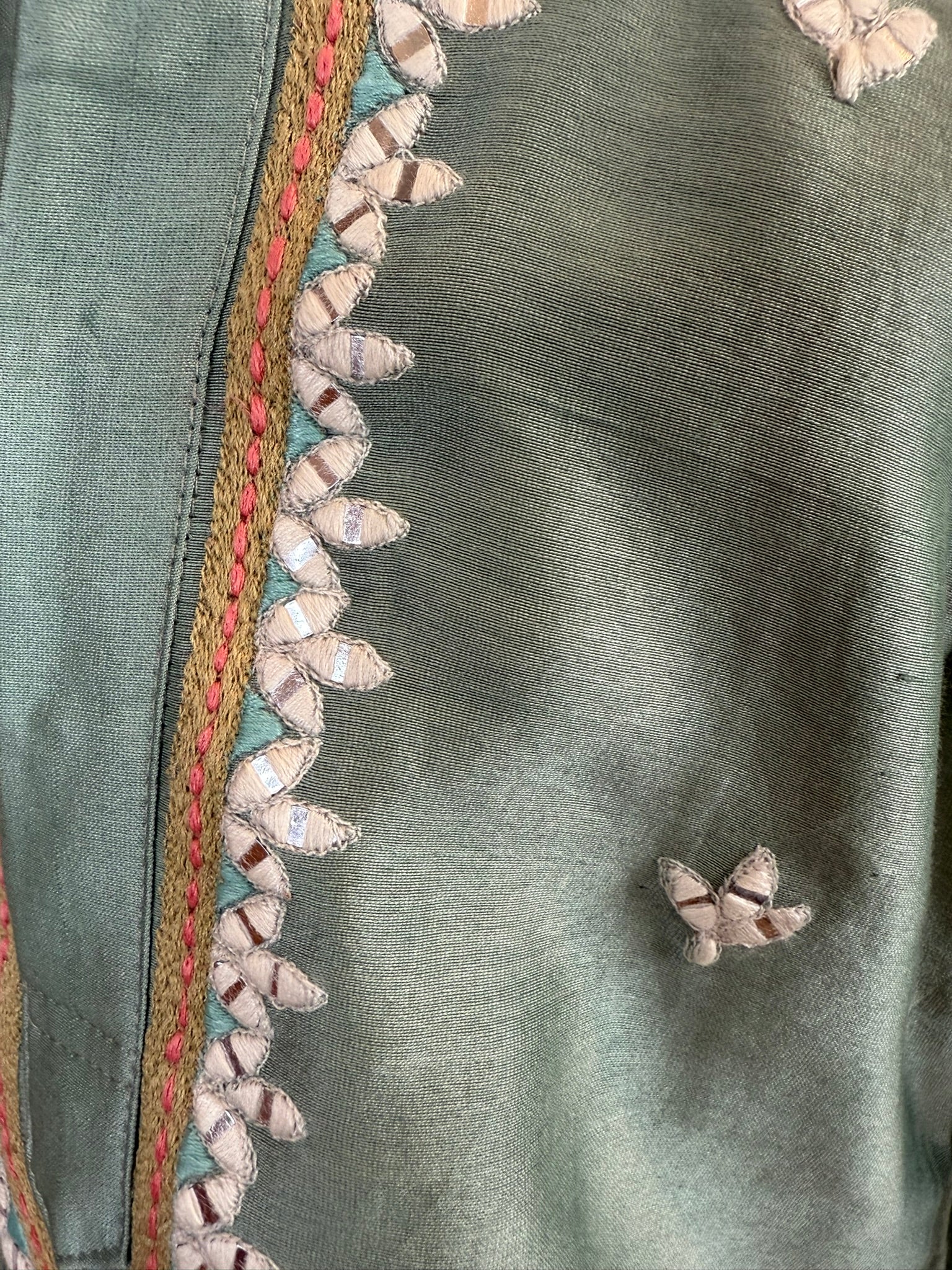 Sea Green Kurta Set with Thread and Mirror Work Embroidery