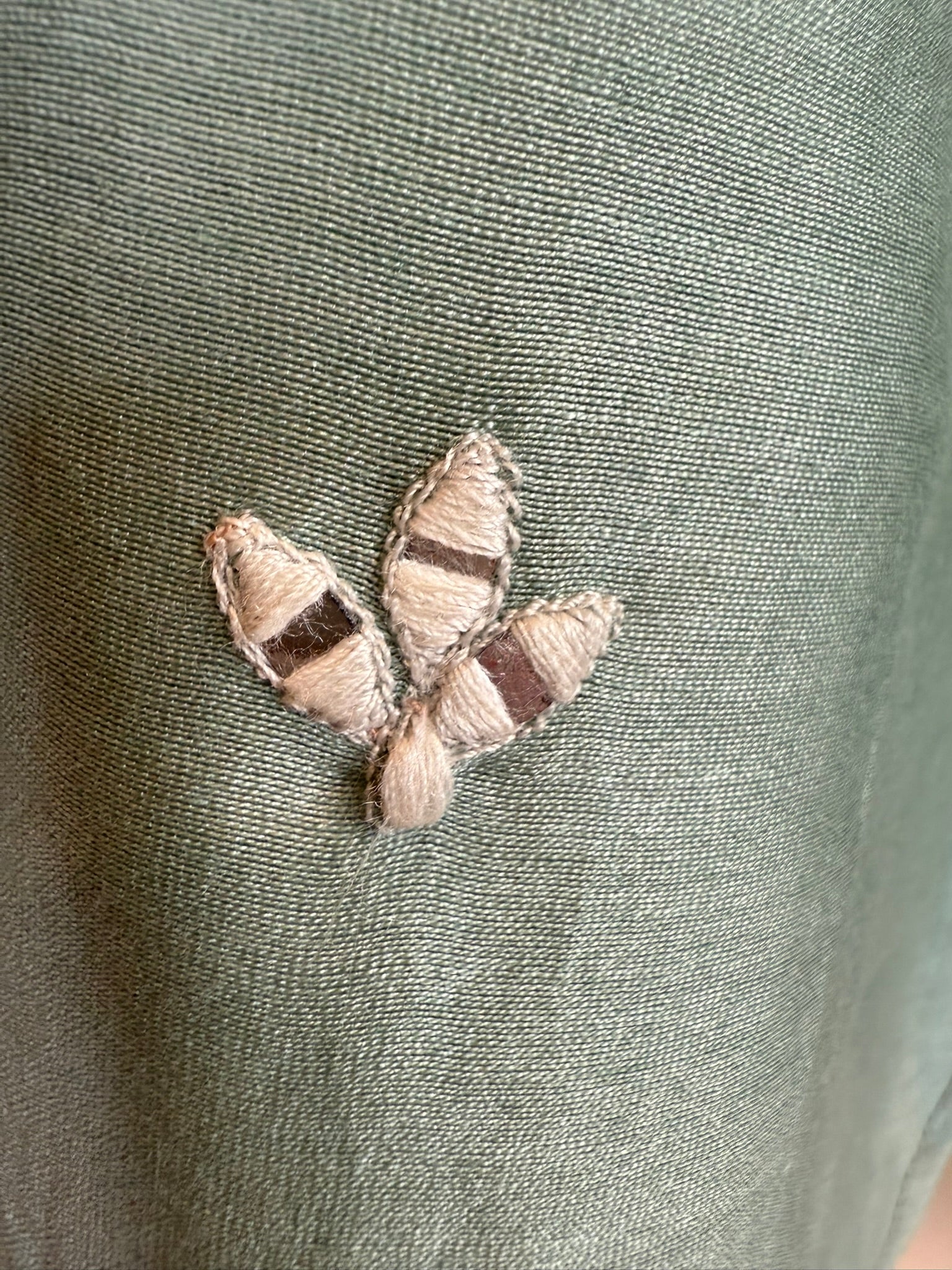 Lining: Mul mul cotton, which is a lightweight, soft and breathable fabric known for its delicate, gauzy texture. It is often loosely woven, giving it a slightly sheer and airy quality.